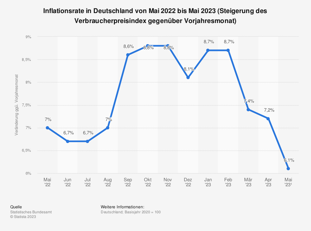 Inflationsrate in Deutschland von Mai 22 bis Mai 23